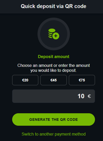 2. Indicate the amount you wish to deposit and click on “Generate the QR code”: