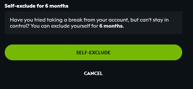 Self-exclusion allows you to exclude yourself for a period of 6 months.