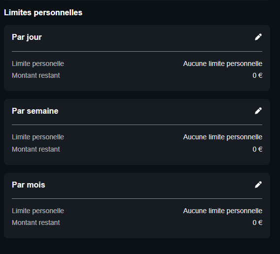 Vous pouvez modifier vos limites personnelles à tout moment depuis les paramètres de votre compte.