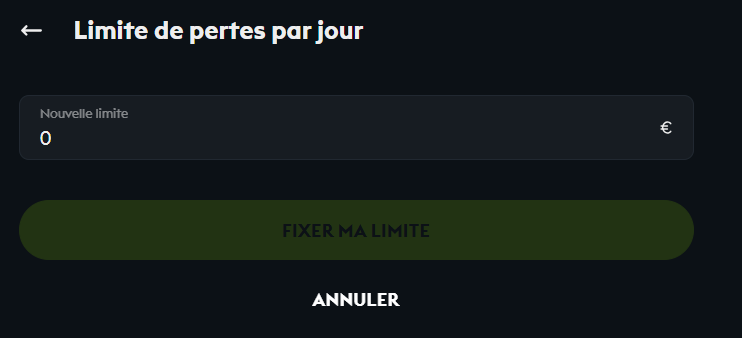 En plus de vos limites de dépôt et de mise, vous avez la possibilité de définir des limites de perte. Ces limites consistent à limiter vos pertes en vous fixant un montant maximum de pertes sur une période de 24 heures, 7 jours et 30 jours.